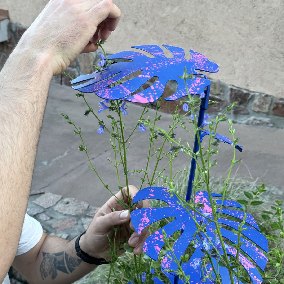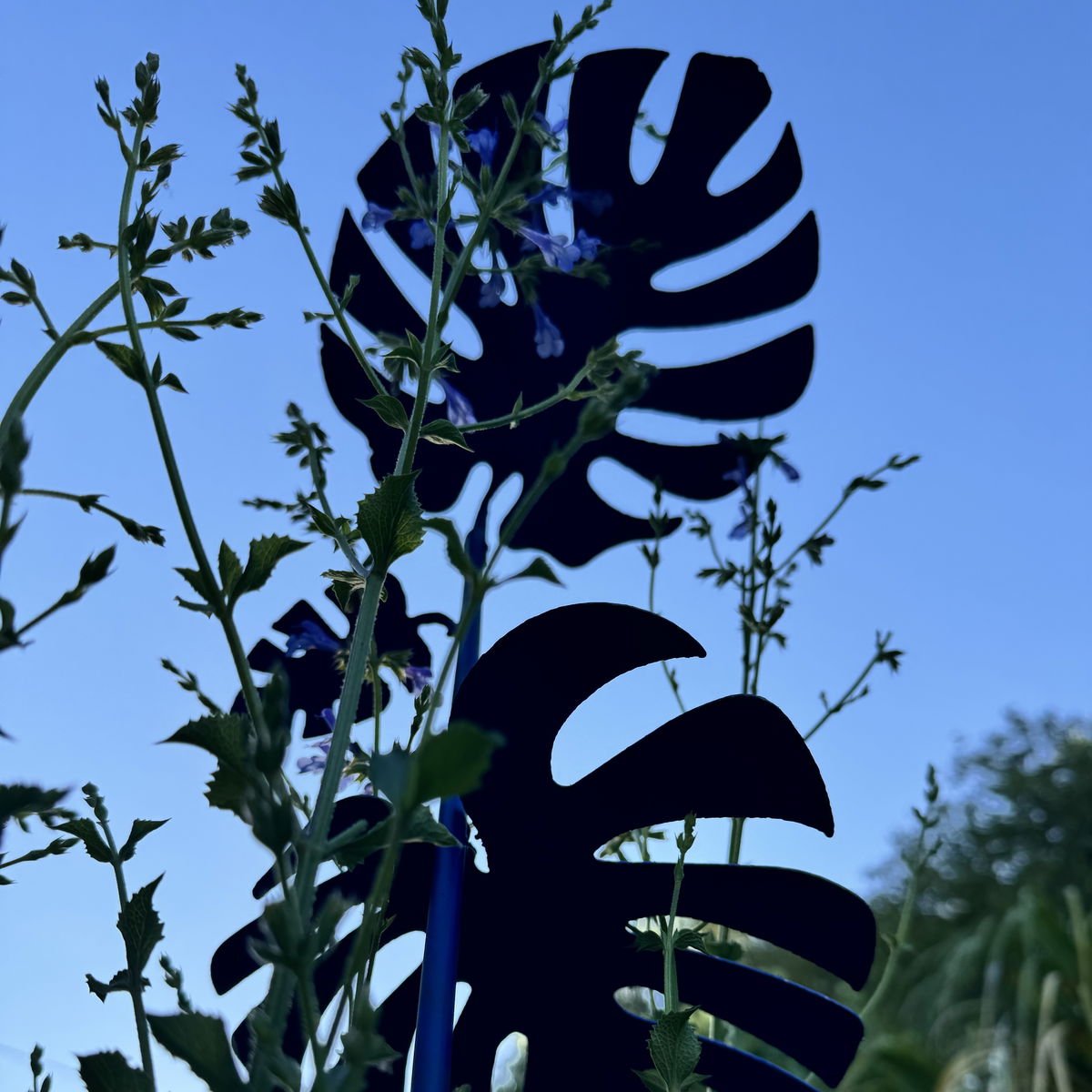Este tutor con elegantes hojas de Monstera no solo guía el crecimiento vertical de tus plantas, sino que también les proporciona una sombra natural, ideal para protegerlas en los días de calor intenso. Gracias a su diseño, las hojas del tutor actúan como puntos de agarre para los tallos, distribuyendo su crecimiento de manera más uniforme y ordenada.
